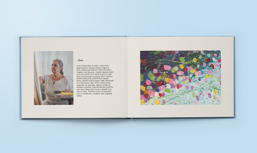 The first step to creating your memorial book is to choose a theme. Either come up with your own theme and start your photo album design from scratch or select one of our ready-made memorial themes. Keep it simple and sophisticated with a classic memorial design, or opt for a modern and colourful design to bring a vibrant feel to their story.