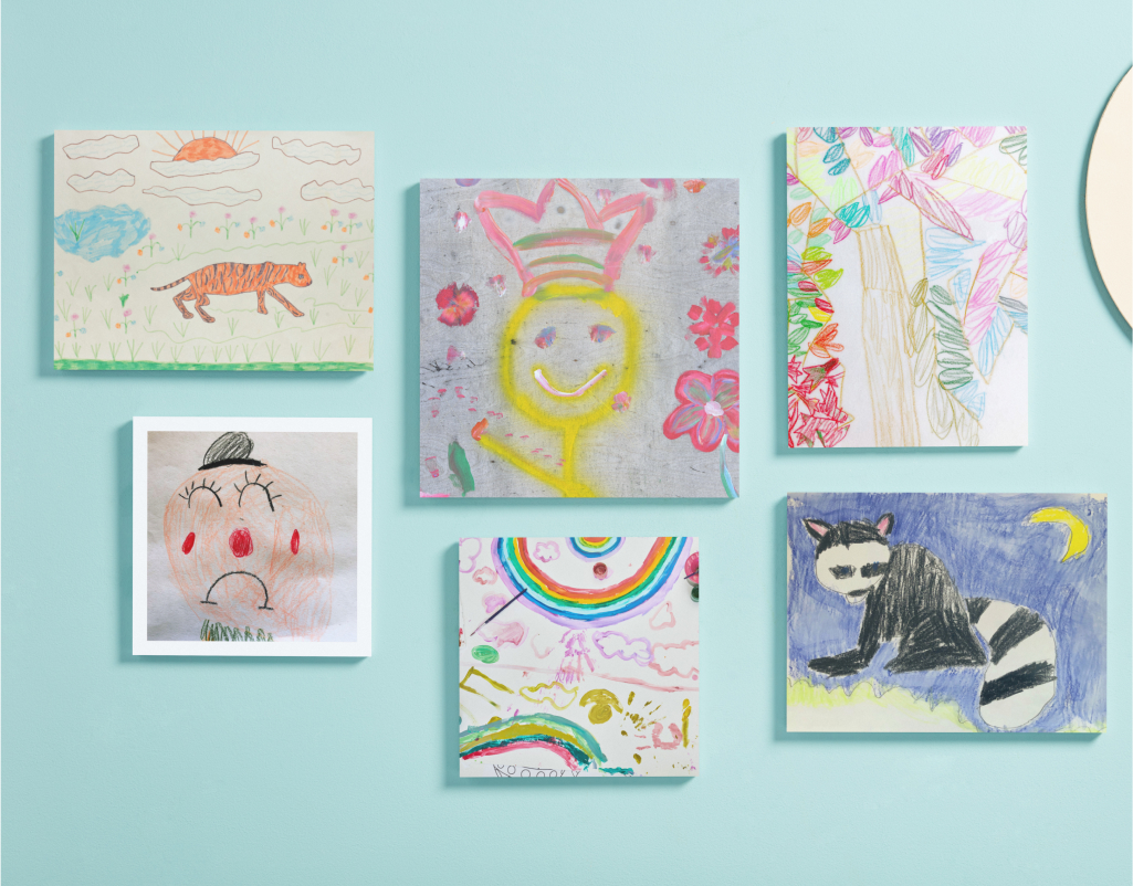 Turn your little one’s bedroom into a private art gallery and print her best work on some Wall art. Go for a set of our restickable Photo Tiles or a Personalised Canvas for mess-free walls, or for a photo collage for wall to print several drawings at once and gain some precious time.
