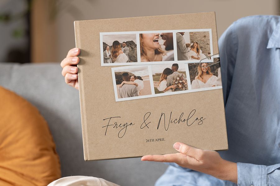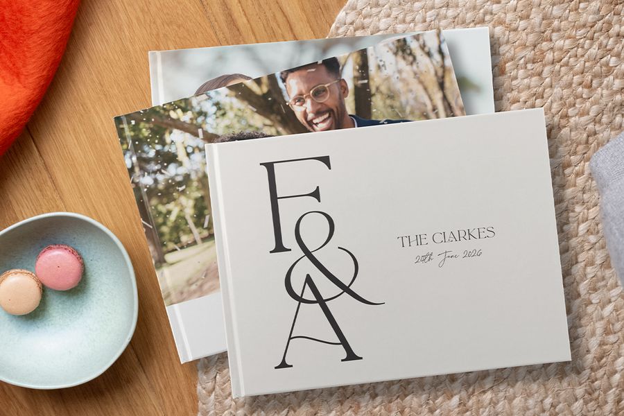 Sometimes keeping it simple and down-to-earth is what works best and suits your personality as a couple. Keep it personal by using your first names as the main title of your photo book, and include the date of your wedding below. Team with one of your favourite snaps from the day and create a photo book that is uniquely you.