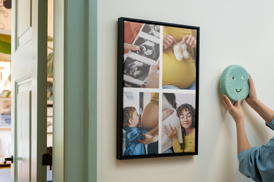 Like we mentioned earlier, pregnancy isn’t just one moment – it’s a collection that marks the path to parenthood. So, why choose just one to display when you could tell the whole story? A personalised photo collage can help bring all your highlights together. To the very first ultrasound to preparing the nursery, a collage captures all the milestones, without losing the personal touch that makes each moment unique.
