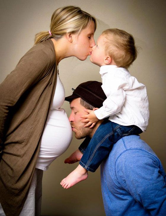 Be creative with your body shapes, and have a think about different positions you can try when creating your family portrait. The below image is perfect if you have a little one on the way, because the whole family can get involved and it is a picture to treasure for years to come. A plain background works best for this kind of photograph – but whether you decide to take it indoors or outdoors, the choice is yours.