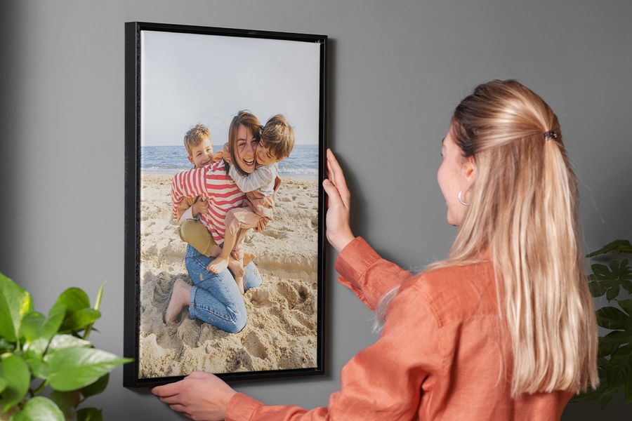 Don’t have many photos together? No worries – you only need one to create a piece of wall art for the perfect birthday present in minutes. All you need to do is choose the material and size that best suits the birthday person’s interior aesthetic. Our handy tool can help you visualise what it will look like in a room so you can be sure you’re gifting a masterpiece.