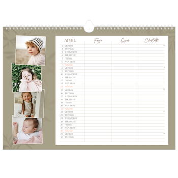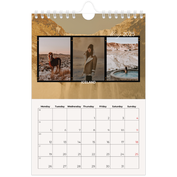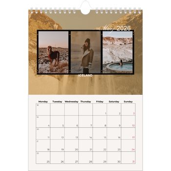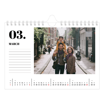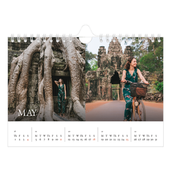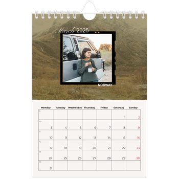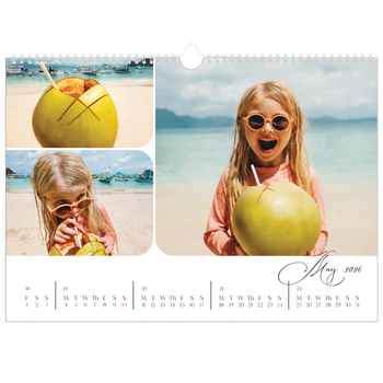 What calendar size fits your wall? Go big on your favourite moments with an A3 wall calendar or an A4 double to showcase your happiest memories. If you’d rather go for a smaller size, we also have A4 wall calendars as well as options in A5 or a square format.