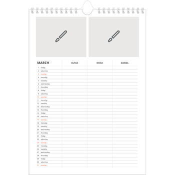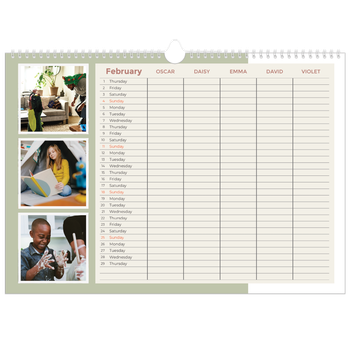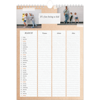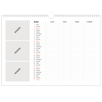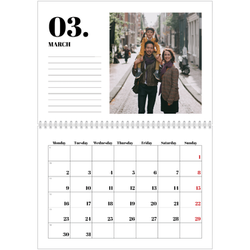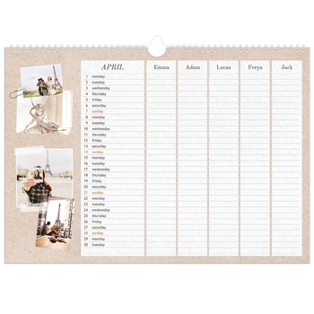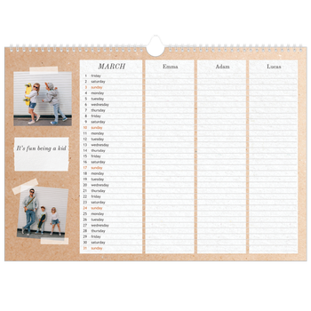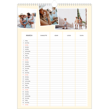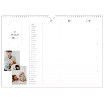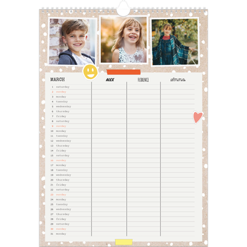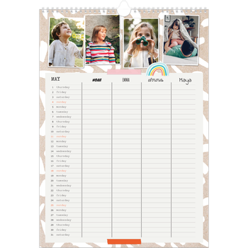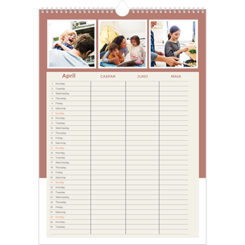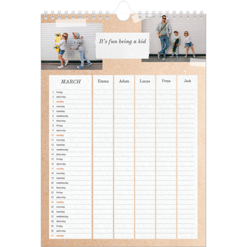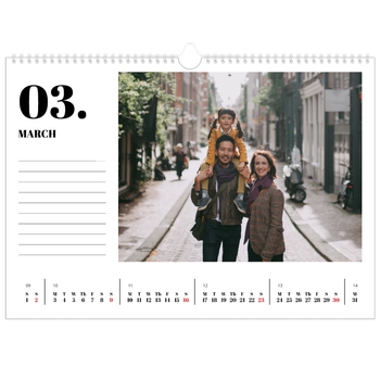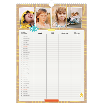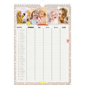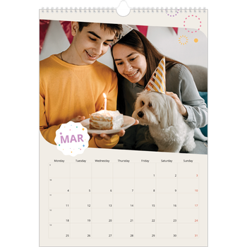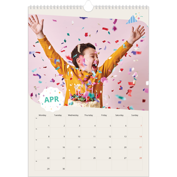 - Make it personal: There are lots of options to design your wall calendar just the way you want. Play with stickers, layouts and colours, add your special days and events and choose your preferred paper type. And if you like, you can start your calendar in any month of the year.