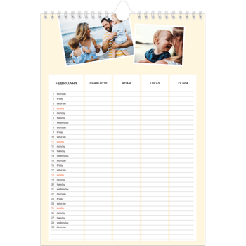 Explore the many ways in which you can personalise your Photobox wall calendar to fit your needs and schedule. Never forget an anniversary or special occasion again – simply add them to your calendar and be prepared for when it’s time to write a card. And who says you need to wait until January? You can start your calendar in any month of the year, making it an ideal back to school or birthday gift.